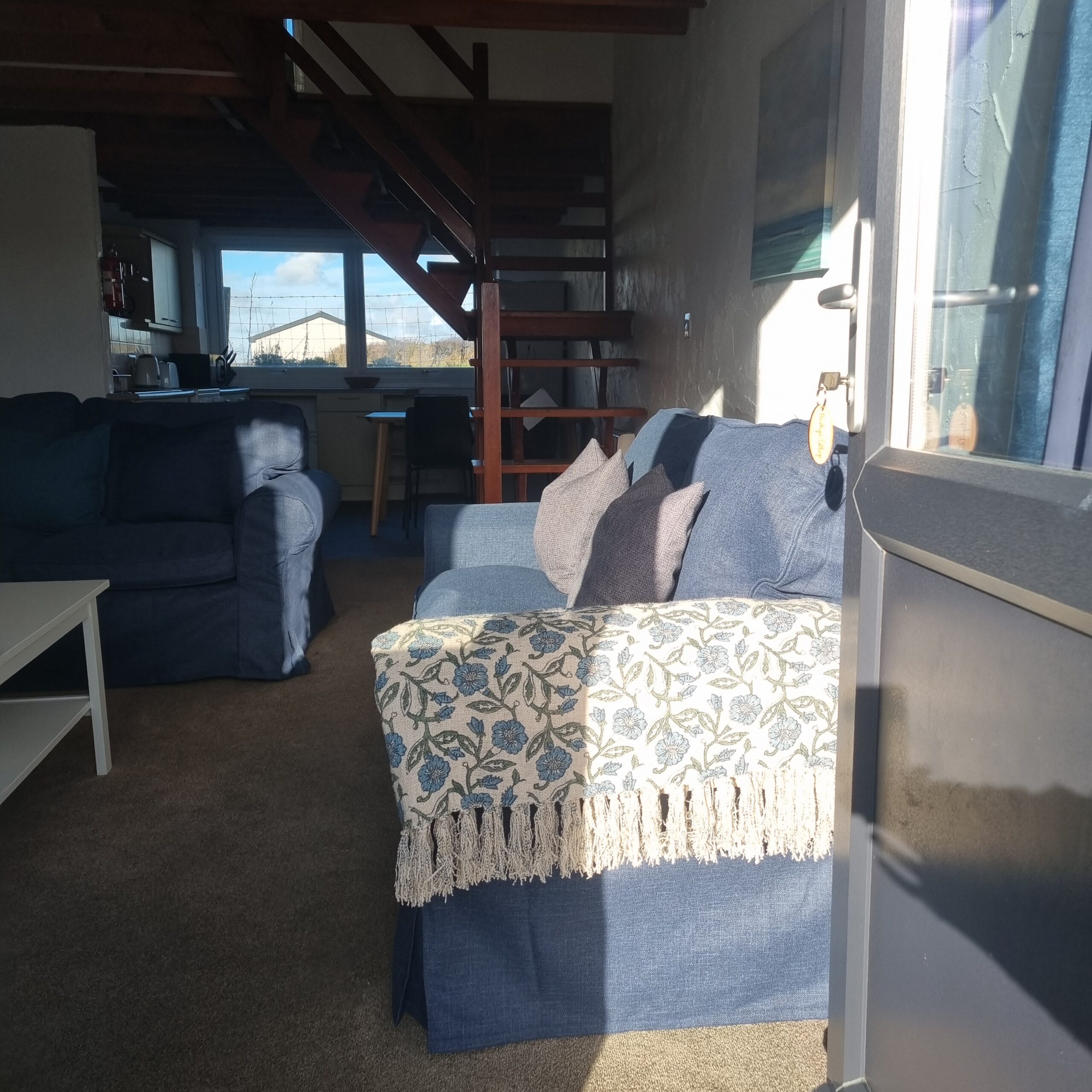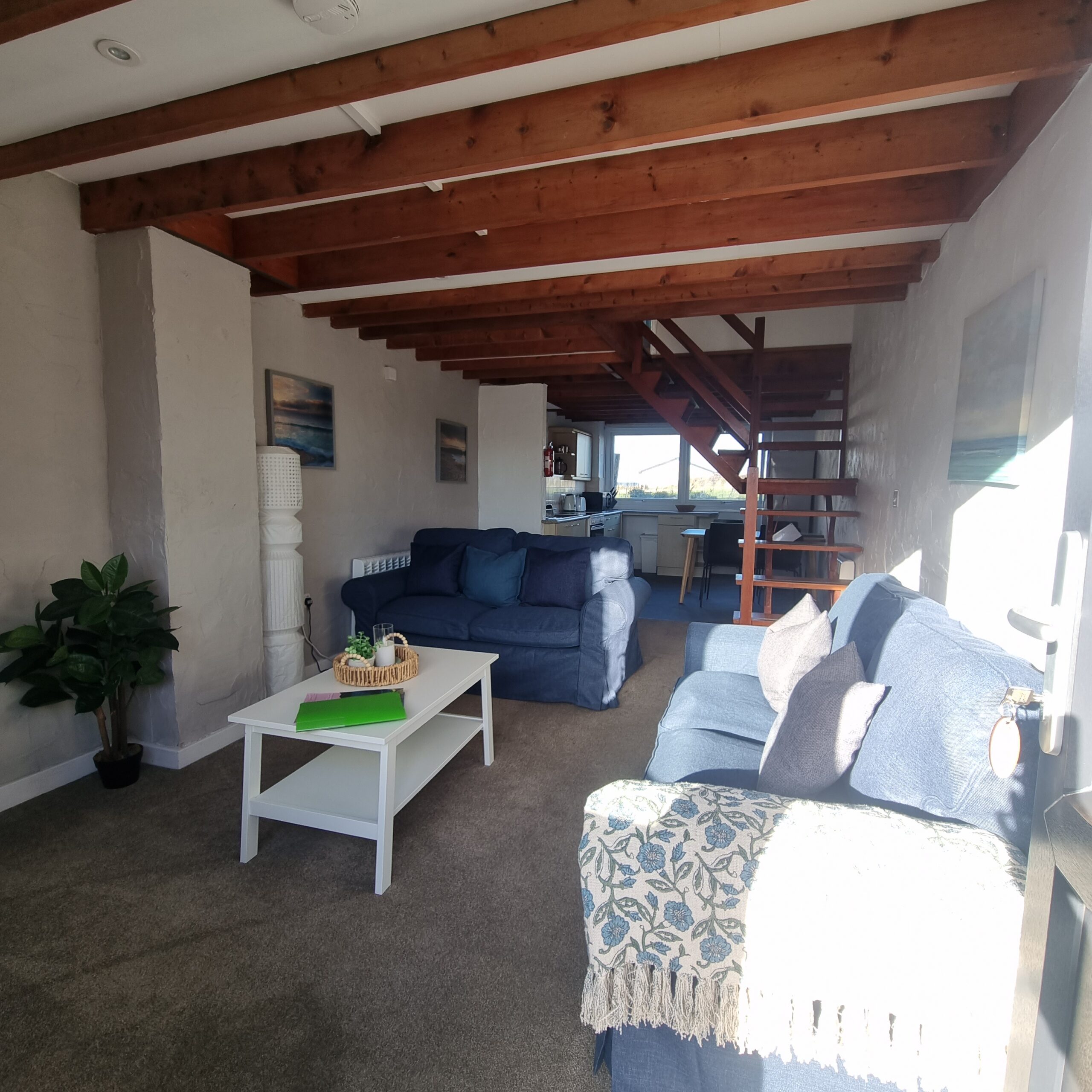 2 bedroomed cottage with bright open plan lounge and well equipped kitchen on the ground floor. Upstairs has 1 double bedroom, 1 twin bedroom, toilet and shower .